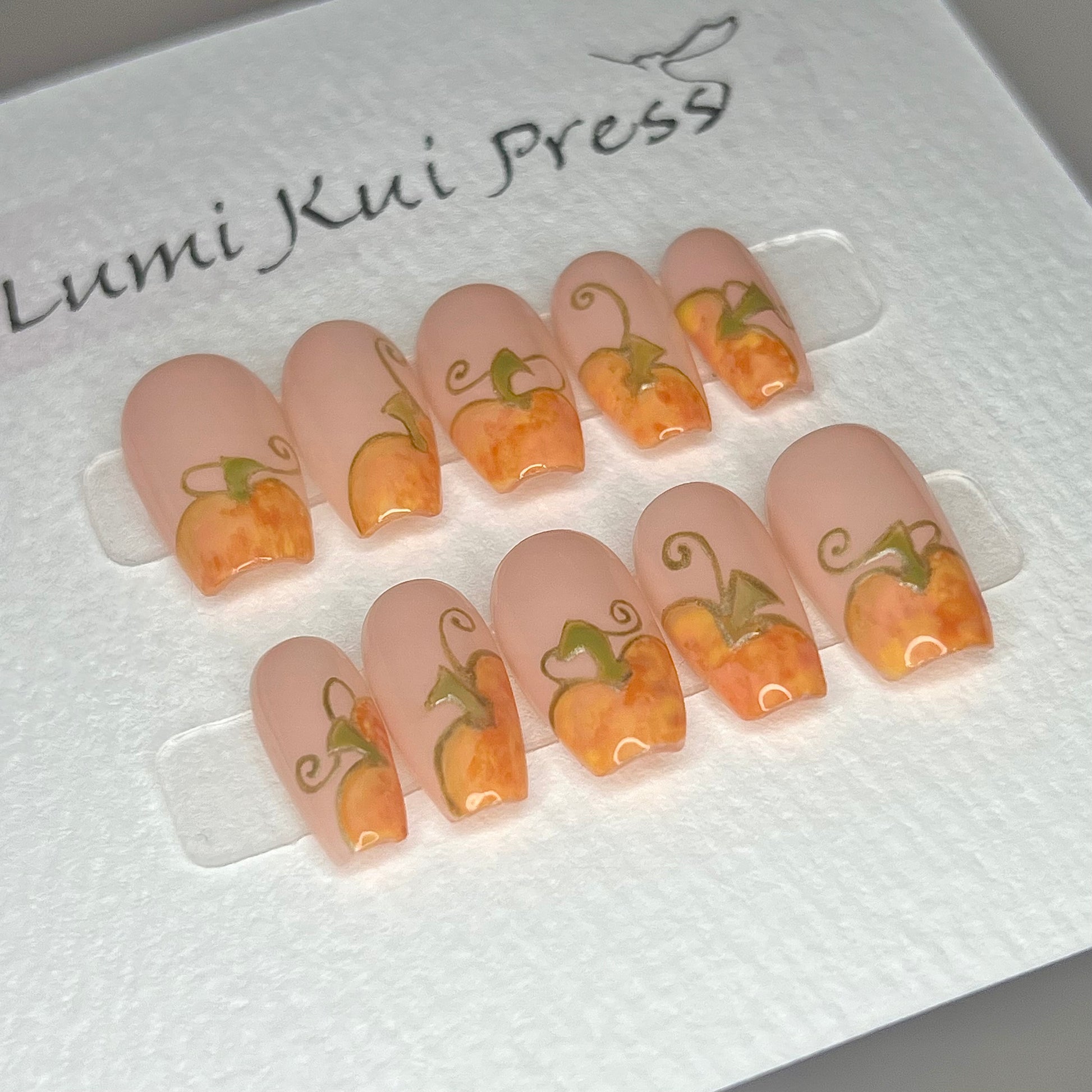 There may be slight variations to each set, as each nail is hand shaped and painted.