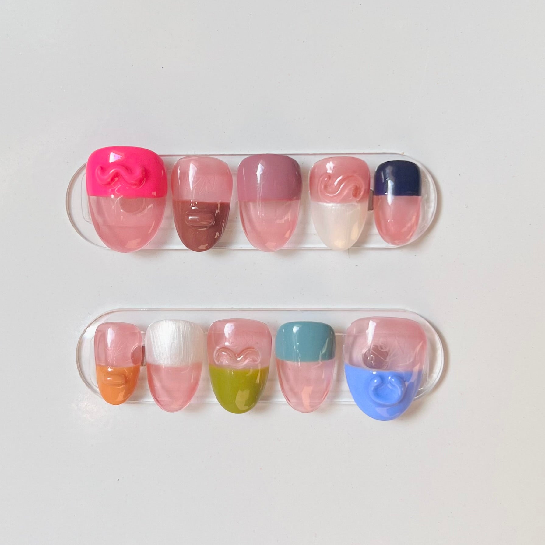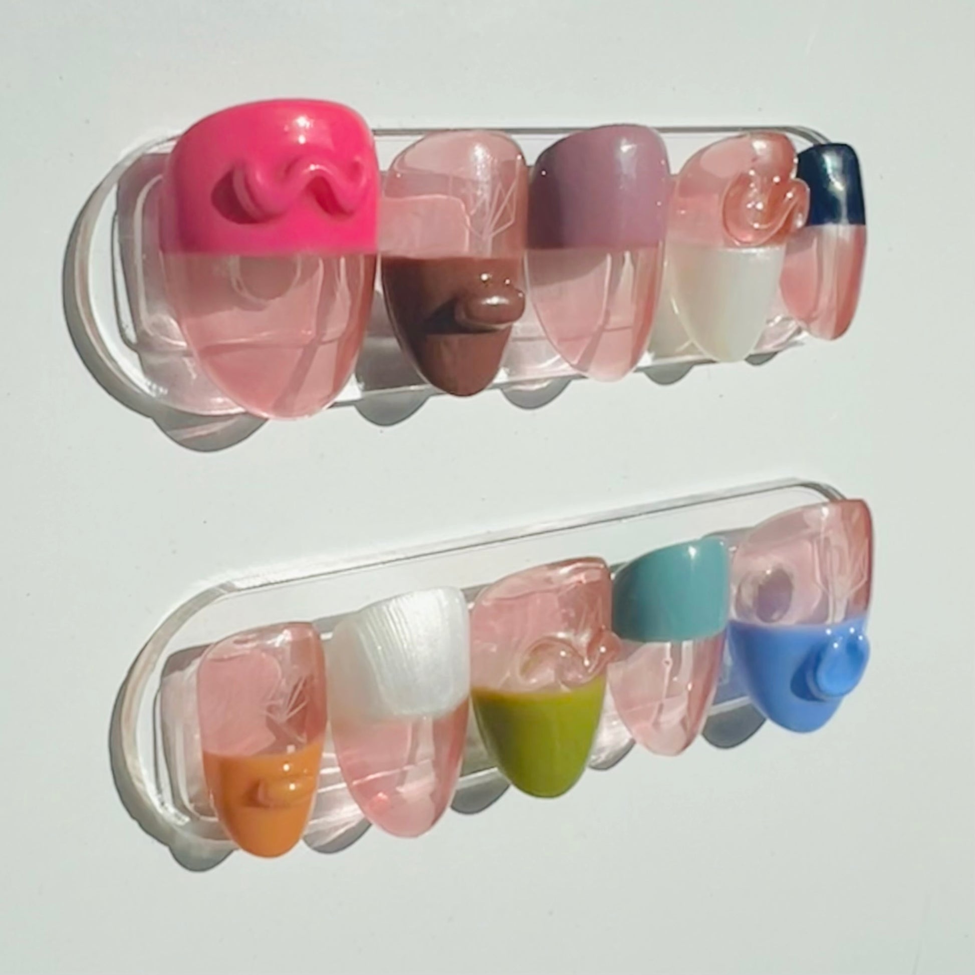 There may be slight variations to each set, as each nail is hand shaped and painted.